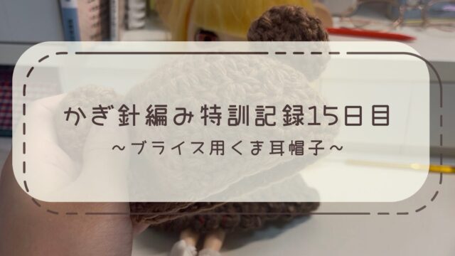 かぎ針編み特訓記録15日目【ブライス用くま耳帽子】