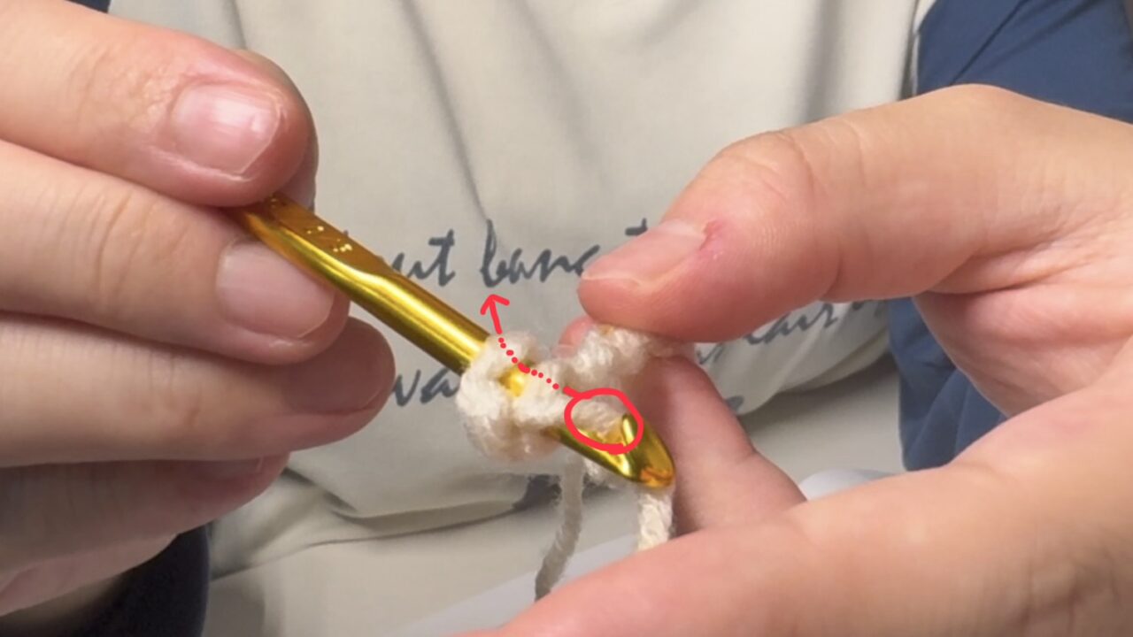 長編みも同様に、作り目に糸を通した後に引っ掛けた糸を引くとき、2本一気に引き抜いちゃってました。
